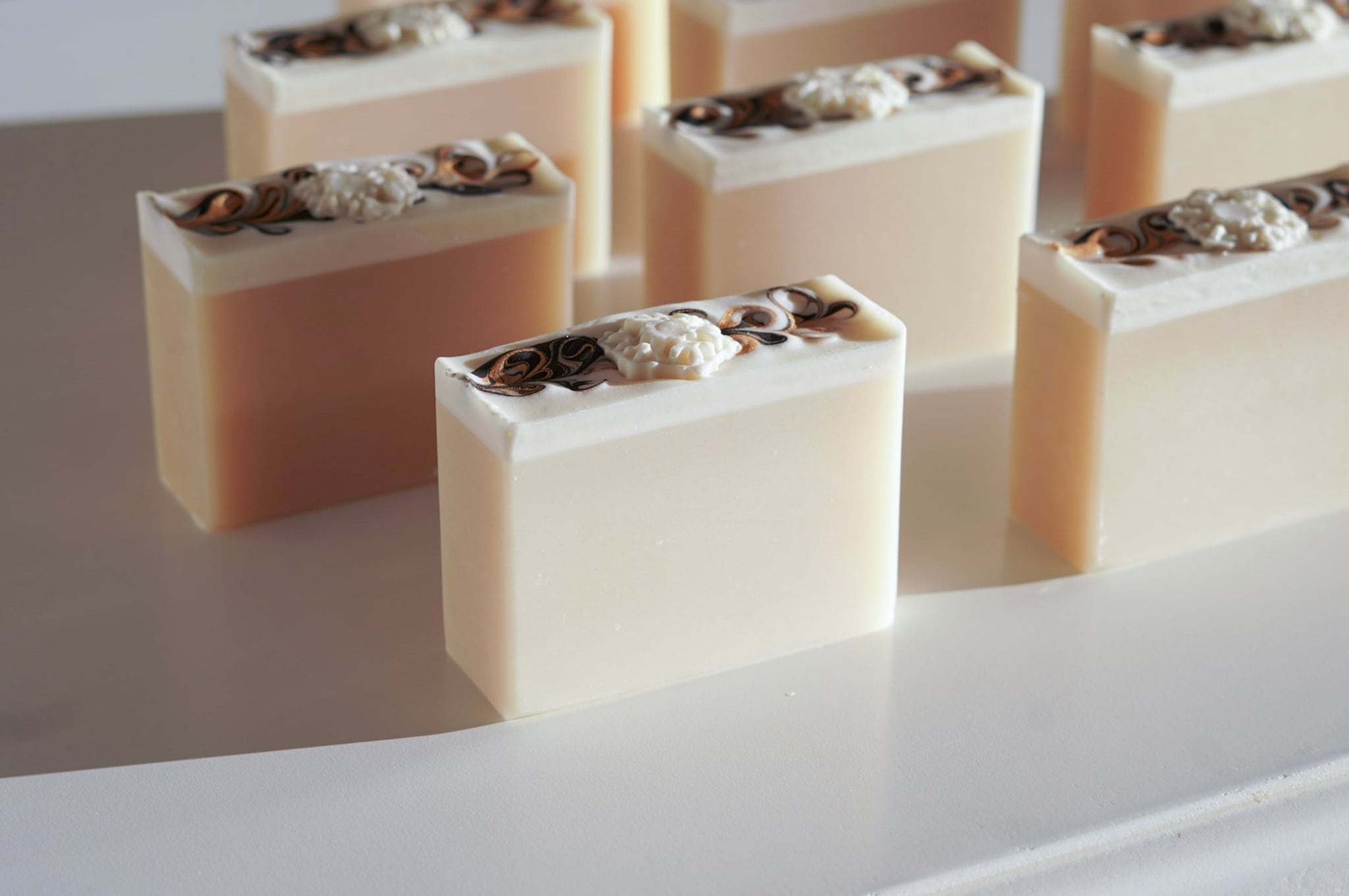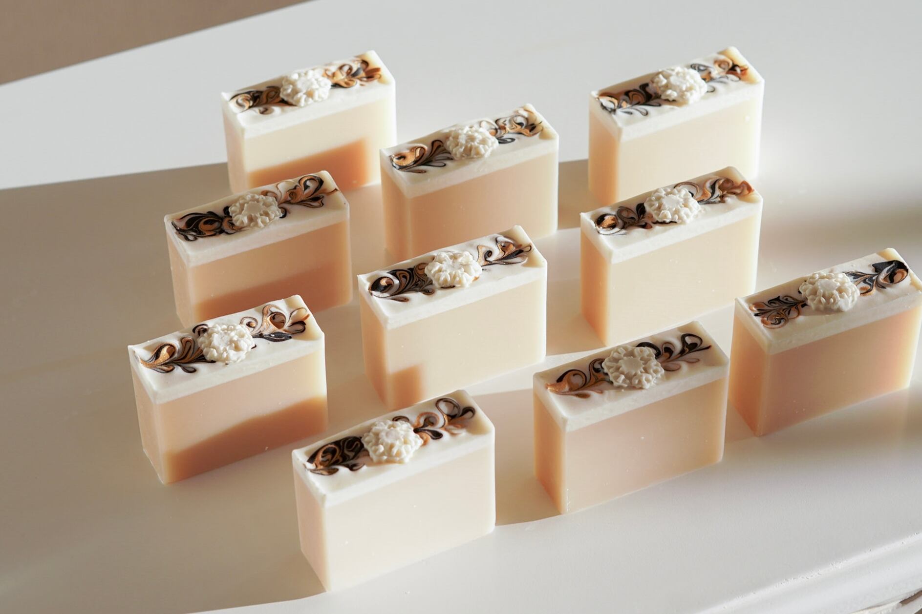 淡いクリーム色の酒粕石けんは無香料。
